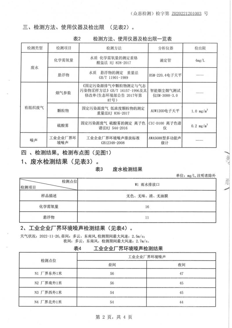 (恒孚)22年11月雨水、有组织废气。噪声检测报告ZH20221201003
