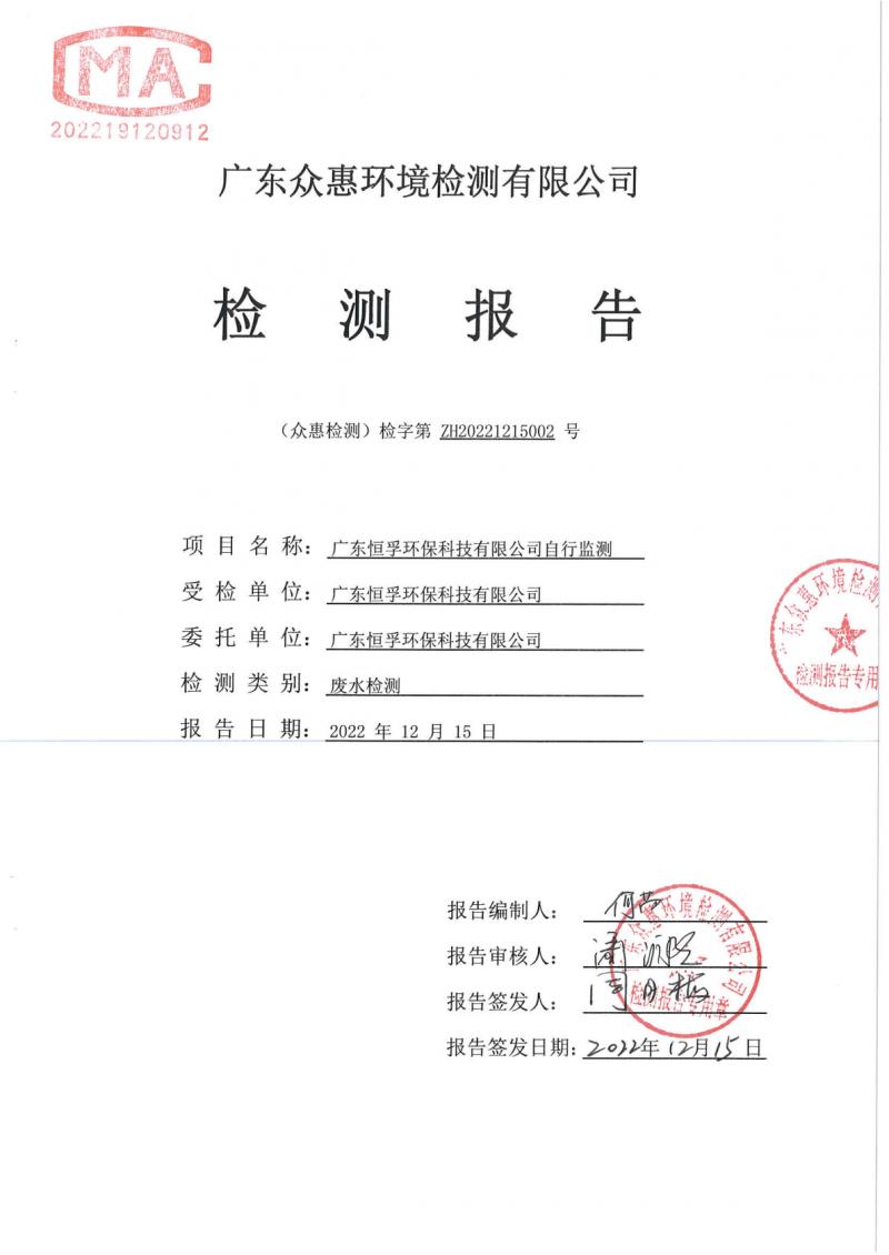 (恒孚)22年12月雨水检测报告ZH20221215002